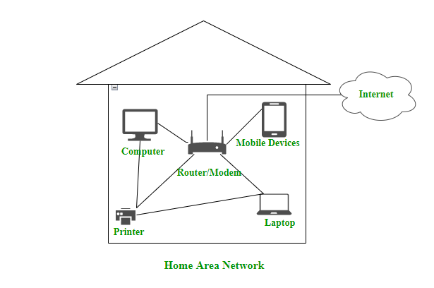 بسیاری از خانه ها ممکن است بیشتر از یک کامپیوتر داشته باشند. برای اتصال این کامپیوترها و سایر دستگاه های جانبی، باید شبکه های مشابه شبکه محلی (LAN) در آن خانه ایجاد شود. چنین نوع شبکه ای که به کاربر اجازه می دهد چندین کامپیوتر و سایر دستگاه های دیجیتالی در یک خانه به هم متصل شوند شبکه خانگی (HAN) گفته می شود. شبکه خانگی امکان اشتراک گذاری منابع، فایل ها و برنامه ها در یک شبکه را تسهیل می کند. در اینجا از ارتباطات سیمی و بیسیم می توان استفاده کرد.